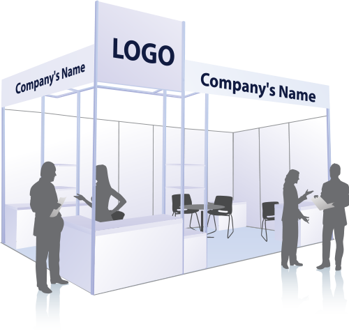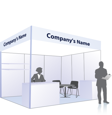 Floor space, walls, carpet, fluorescent tube lighting, 5 Amp socket outlet, information counter, upright chair, round table, display stand, lockable cabinet, partition, fascia and wastepaper basket.