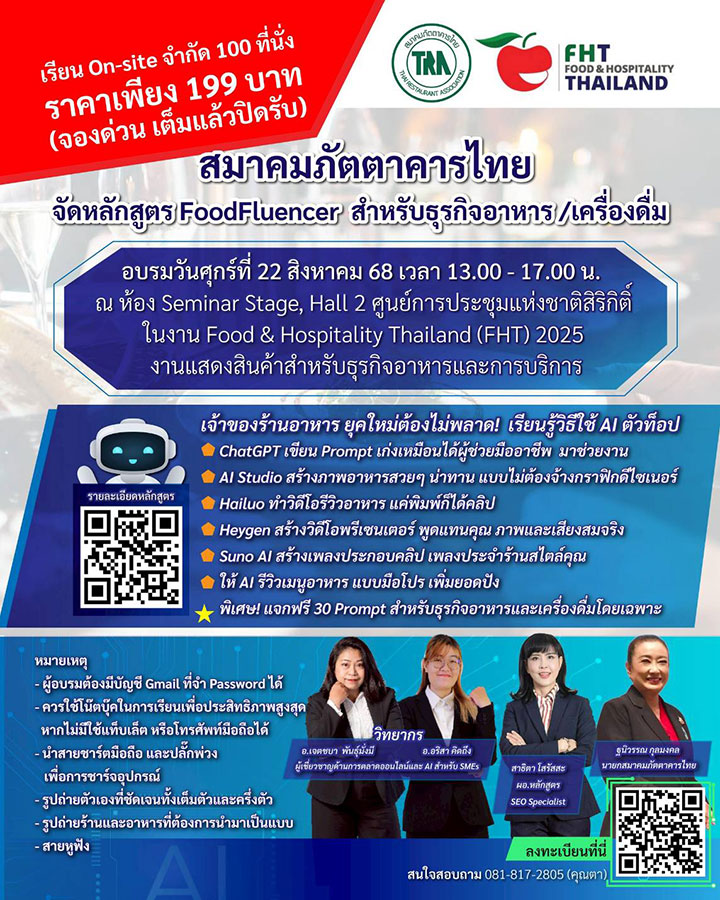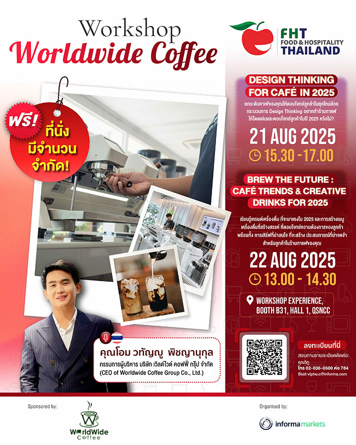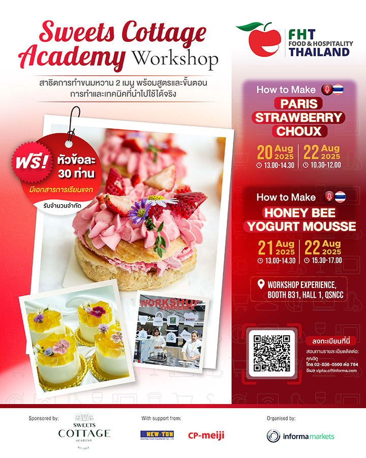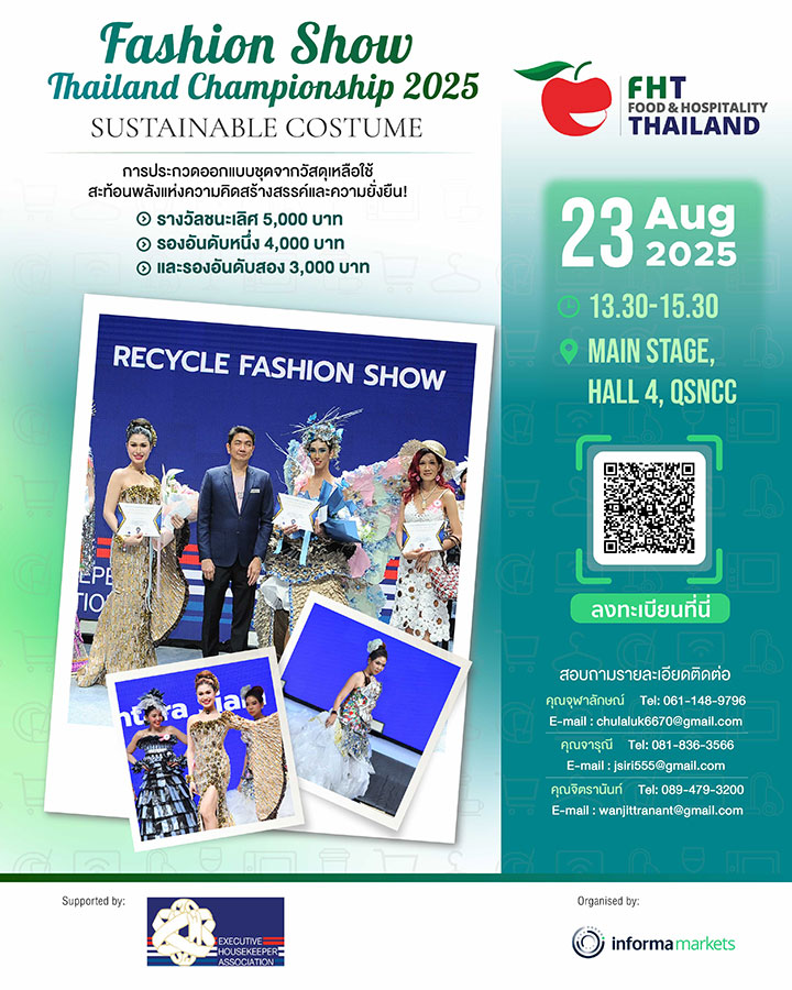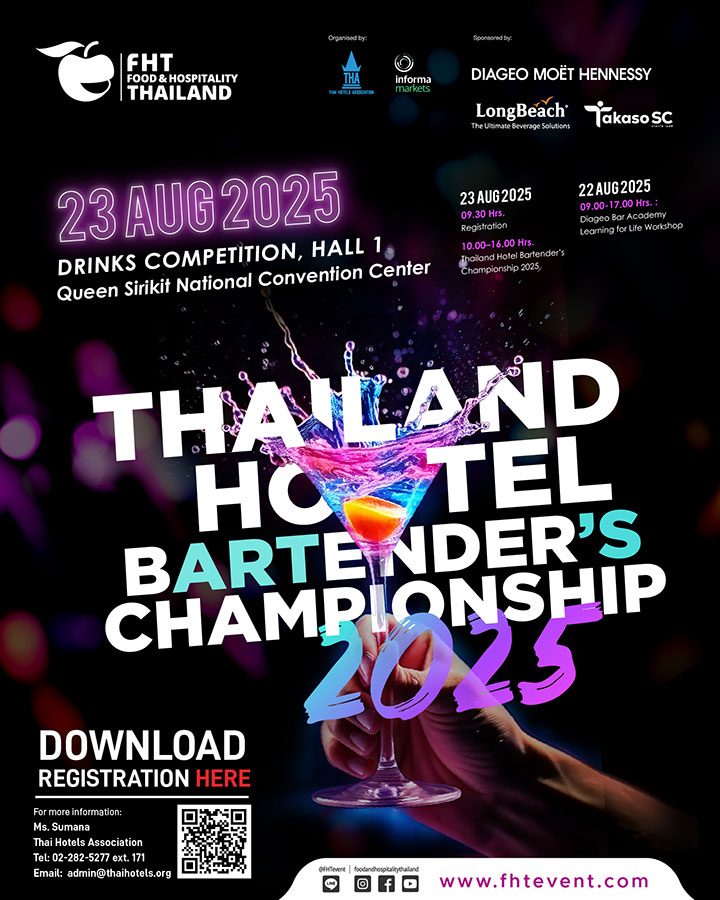 As a key highlight of Thai Tourism & Hospitality Week, Food & Hospitality Thailand (FHT) 2025 enters its 31st edition, offering even more exciting solutions and activities for the food & drink, and hospitality industries. With the theme "Connecting Excellence in Food & Hospitality" FHT brings together leading companies and industry professionals, showcasing best-in-class solutions and cutting-edge technologies. This dynamic event builds connections, ignites fresh ideas, and enhances Thailand's tourism industry by promoting excellence in every aspect. FHT 2025 serves as the premier platform for local and international businesses in the food and hospitality sectors to connect, share their expertise, and drive their success to new heights.